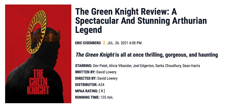 ไม่เคยทำให้ผิดหวัง! สำหรับผลงานภาพยนตร์จากค่ายคุณภาพอย่าง A24 ที่ก่อนหน้านี้เคยส่งภาพยนตร์อย่าง The Lobster, Moonlight, Minari กวาดคำชม และกระแสชื่นชอบจากนักวิจารณ์ รวมถึงผู้ชมทั่วโลกมาแล้ว ล่าสุดกับผลงานระดับมาสเตอร์พีซอย่าง “The Green Knight” ภาพยนตร์ที่นำเรื่องราวจากตำนานเหนือกาลเวลาของคิงอาเธอร์และอัศวินโต๊ะกลมมาตีความใหม่ ซึ่งสามารถกวาดคะแนนจาก Rotten Tomatoes ได้สูงถึง 94 % รวมถึงได้รับคำวิจารณ์และคำชมบวก ๆ จากทุกสถาบันและกระแสเสียงตอบรับอย่างล้นหลามขึ้นแท่นเป็นภาพยนตร์แห่งปีเป็นที่เรียบร้อย