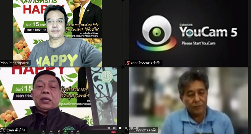 วันที่ 15 ส.ค.64 ดร.เฉลิมชัย ศรีอ่อน รัฐมนตรีว่าการกระทรวงเกษตรและสหกรณ์ในฐานะประธานคณะกรรมการพัฒนาและบริหารจัดการผลไม้(Fruit Board) เป็นประธานการแถลงข่าว Live สดผ่าน facebook : คณะอนุกรรมการขับเคลื่อน Ecommerce กระทรวงเกษตรและสหกรณ์ เปิดตัวโครงการ “เกษตรกร Happy” phase 2 เพื่อช่วยเกษตรกรชาวสวนลำไย เงาะ ลองกอง ในการขายผลไม้คุณภาพดี สดจากสวน ถึงมือผู้บริโภคโดยตรง ซึ่งโครงการดังกล่าว เป็นแผนการดำเนินงานของคณะกรรมการพัฒนาและบริหารจัดการผลไม้ (Fruit Board) ที่ต้องการช่วยเหลือเกษตรกรชาวสวนผลไม้ที่ได้รับผลกระทบจากโควิด-19 ที่ทวีความรุนแรงและเข้าขั้นวิกฤต จนทำให้มีการเพิ่มมาตรการล็อกดาวน์ทั้งในและต่างประเทศ ตลาดต่างประเทศมีการตรวจสอบอย่างเข้มข้นมากขึ้น ระบบขนส่งระหว่างประเทศเกิดความติดขัด ตู้คอนเทนเนอร์ขาดแคลน แรงงานและผู้ค้า รวมทั้งบริษัทขนส่งในประเทศติดโควิดเพิ่มมากขึ้น ผู้ส่งออกและล้งลดจำนวนลง ในขณะที่ผลไม้อยู่ในช่วงฤดูกาลเก็บเกี่ยวพร้อม ๆ กัน ทั้งมังคุด เงาะ ลำไย และลองกอง เป็นต้น