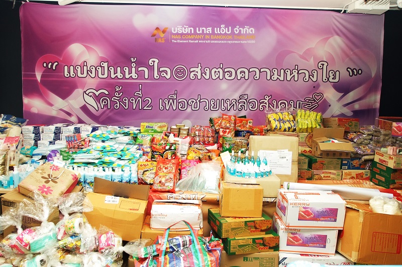 เมื่อวันที่ 22 สิงหาคม 2564 บริษัท นาส แอ็ป จำกัด (NAS COMPANY IN BANGKOK THAILAND) มอบพลังน้ำใจสู้ภัยโควิด-19 “แบ่งปันน้ำใจ ส่งต่อความห่วงใย ครั้งที่ 2 เพื่อช่วยเหลือสังคม” ได้บริจาคข้าวสาร อาหารแห้ง เครื่องของใช้ น้ำดื่ม หน้ากากอนามัย เจลล้างมือ แอลกอฮอล ให้แก่ หน่วยปฏิบัติการ “กู้ชีพกูบแดง” หน่วยบริการการแพทย์ฉุกเฉินขั้นพื้นฐาน กรุงเทพมหานคร เพื่อนำไปช่วยผู้ป่วยติดเชื้อไวรัสโควิด-19 สายพันธุ์ใหม่ และผู้ที่ได้รับผลกระทบจากการแพร่ระบาดของเชื้อไวรัสโควิด-19 ณ บริษัท นาส แอ็ป จำกัด ถนนพระราม 9 กรงเทพฯ