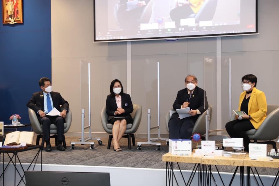 26 สิงหาคม 2564 ศาสตราจารย์(พิเศษ) ดร.เอนก เหล่าธรรมทัศน์ รัฐมนตรีว่าการกระทรวงการอุดมศึกษา วิทยาศาสตร์ วิจัยและนวัตกรรม (รมว.อว.) ให้เกียรติเป็นประธานเปิดงานเสวนา เรื่อง “ศึกษาอดีต เรียนรู้ปัจจุบัน สู่อนาคตกับวิทยาศาสตร์ไทยสู้ภัยโควิด” จัดโดยกรมวิทยาศาสตร์บริการ (วศ.) ร่วมมือกับสถาบันวิจัยวิทยาศาสตร์และเทคโนโลยีแห่งประเทศไทย (วว.) และสำนักงานพัฒนาวิทยาศาสตร์และเทคโนโลยีแห่งชาติ (สวทช.) ผ่านระบบ ZOOM Online และ Facebook Live เพื่อสอดคล้องกับนโยบายการเว้นระยะห่างทางสังคม (Social Distancing) ณ ห้องแถลงข่าว ชั้น 1 อาคารพระจอมเกล้าฯ สป.อว.