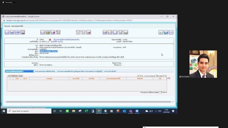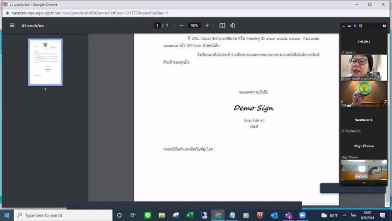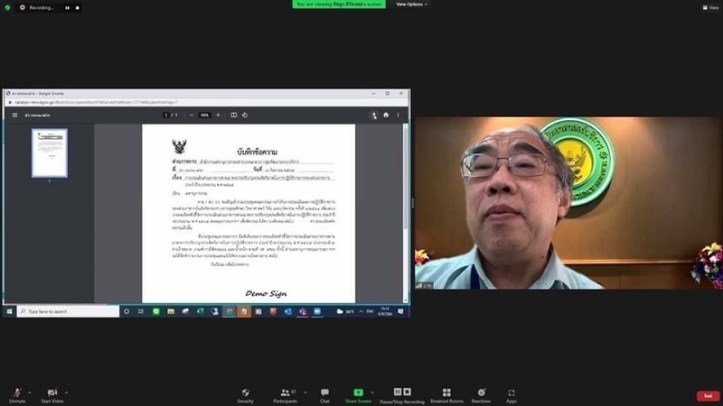 เมื่อวันพุธที่ 8 กันยายน 2564 นพ.ปฐม สวรรค์ปัญญาเลิศ อธิบดีกรมวิทยาศาสตร์บริการ พร้อมด้วยคณะผู้บริหาร และเจ้าหน้าที่ วศ. เข้าร่วมอบรมและทดลองใช้ระบบสารบรรณอิเล็กทรอนิกส์ สำหรับลงนามเอกสารอิเล็กทรอนิกส์ ผ่านระบบออนไลน์ Zoom Meeting ตามนโยบายการเว้นระยะห่างทางสังคม (Social Distancing) เพื่อสร้างความรู้ความเข้าใจและสามารถใช้งานระบบสารบรรณอิเล็กทรอนิกส์ (e-Saraban) ผ่านเครือข่าย Internet ได้อย่างถูกต้อง ทั้งการสร้างหนังสือ กระบวนการลงนามอิเล็กทรอนิกส์ตลอดจนการรับ-ส่งภายในหน่วยงานและภายนอกหน่วยงาน ตลอดจนส่งเสริมให้มีการใช้งานระบบสารบรรณฯ ในการสื่อสารกับบุคลากรเพื่อลดการใช้กระดาษ และสนับสนุนการลงนามแบบอิเล็กทรอนิกส์อย่างเป็นรูปธรรม โดยได้รับเกียรติจาก คุณชัชฎา สิริธนกุล Senior Application Implementator จากบริษัท ซีดีจี ซิสเต็มส์ จำกัด และทีมงาน มาเป็นวิทยากร