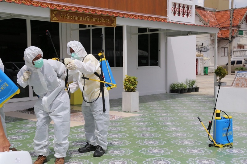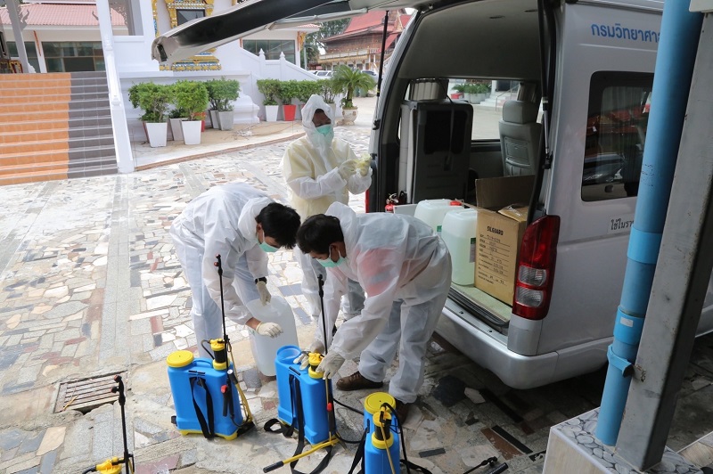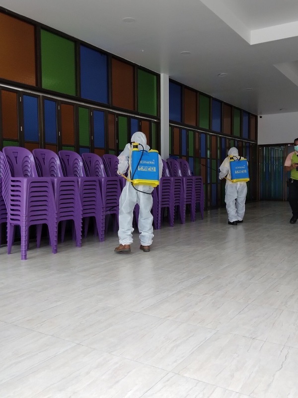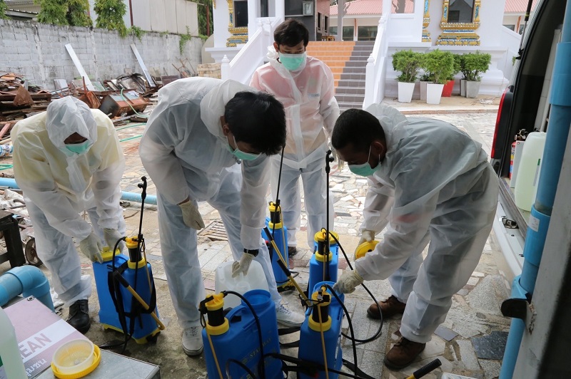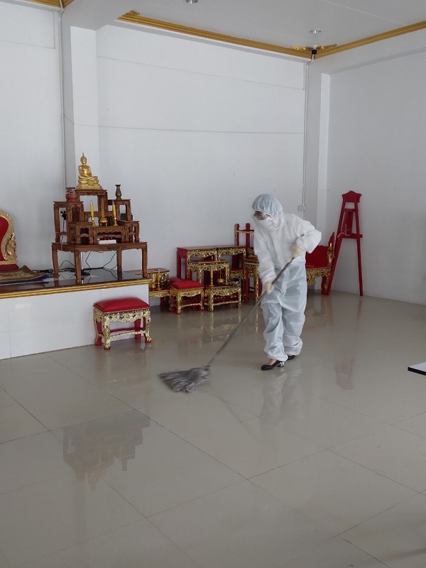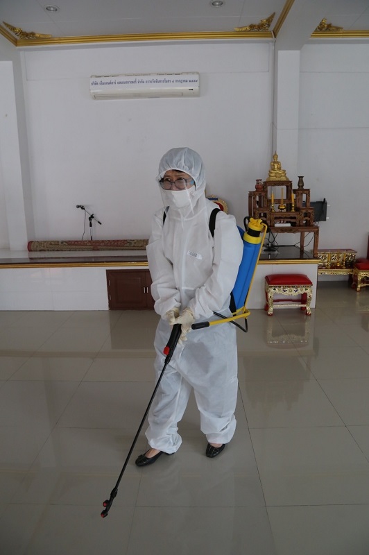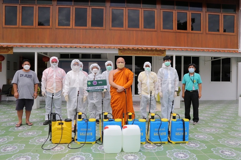วันที่ 14 กันยายน 2564 ดร. จันทร์เพ็ญ เมฆาอภิรักษ์ รองอธิบดีกรมวิทยาศาสตร์บริการ (วศ.) นำทีมเจ้าหน้าที่ วศ. พร้อมอุปกรณ์น้ำยาฉีดพ่นฆ่าเชื้อเพื่อช่วยเหลือชุมชนในพื้นที่ซึ่งเคยเป็นสถานที่พักคอยผู้ป่วยโควิด ภายใต้โครงการ “อว.พารอด Clear & Clean” กระทรวงการอุดมศึกษา วิทยาศาสตร์ วิจัยและนวัตกรรม โดยได้ดำเนินการส่งมอบพื้นที่ปลอดภัยให้ประชาชน ณ วัดจันทรสโมสร เขตดุสิต กทม. ซึ่งได้รับความร่วมมือจากเจ้าอาวาสและผู้แทนชุมชนเป็นอย่างดี