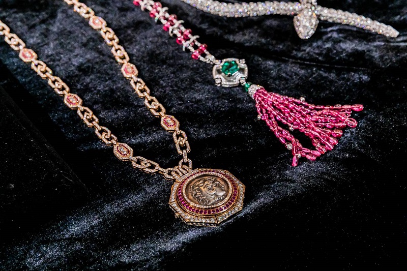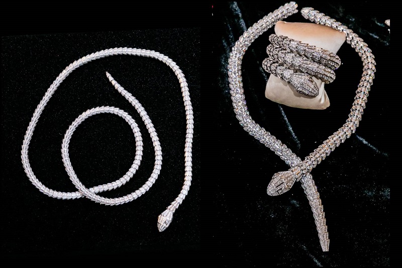 สร้อย ‘บูลการี ลอง ไดมอนด์ เซอเพนติ สเนค เนคเลส’ (Bvlgari Long Diamond Serpenti Snake Necklace) สร้อยคอทองขาว (White Gold) 18K ที่มีดีไซน์บ่งบอกถึงความหรูหรา สร้อยงูตัวยาวดึงดูดทุกสายตาเมื่อหยิบมาสวมใส่ รวมถึงเครื่องประดับชิ้นเอ็กซ์คลูซีฟอย่าง ‘สร้อยแบบสั่งทำพิเศษ’ (Bvlgari Special Order) ที่ผู้สวมใส่สามารถเลือกพลอยประดับได้เอง ตามความพึงพอใจ ในตัวเรือนอันงดงามของแบรนด์ ซึ่งการสั่งทำสร้อยแบบพิเศษนี้จะต้องเป็นลูกค้าวีวีไอพี (VVIP) ของแบรนด์เท่านั้นถึงจะสามารถสั่งทำได้ ซึ่งสร้อยเส้นนี้สนนราคาที่ 18.5 ล้านบาท