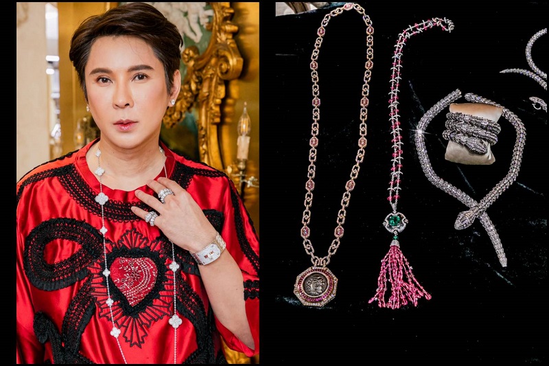 สร้อย ‘บูลการี เซอเพนติ ไดมอนด์ เนคเลส’ (Bvlgari Serpenti Diamond Necklace) สร้อยคองูสุดโดดเด่นอันเป็นเอกลักษณ์เฉพาะของแบรนด์ ตัวเรือนผลิตจากทองขาว (White Gold) โดยความพิเศษของเครื่องประดับชิ้นนี้อยู่ที่เป็นการสั่งทำไซส์ขนาดพิเศษ เพราะโดยปกติแล้วสร้อยคอชิ้นนี้จะผลิตไซส์สำหรับผู้หญิง หากต้องการขยายไซส์เพิ่มจะต้องมีค่าใช้จ่ายเพิ่ม ซื้อมาในราคา 13 ล้านบาท แต่ตอนนี้ราคาขึ้นไปถึง 16 ล้านบาท