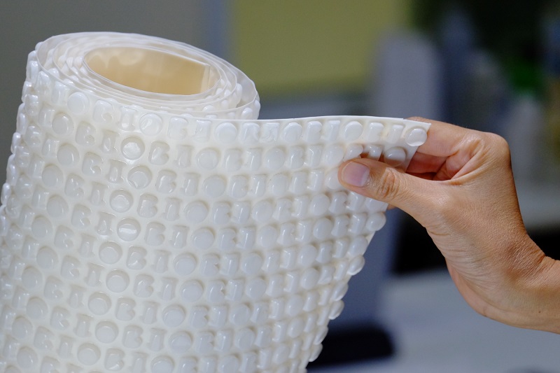 ขณะที่ผลิตภัณฑ์มีจุดเด่นภายนอกที่ชัดเจนด้วยลายนูนที่เป็นปุ่มกันกระแทกที่เรามักเรียกกันว่า ‘ปุ่มป๊อกแป๊ก’ บริษัทได้ออกแบบโมลด์เครื่องจักรโดยเฉพาะเป็นปุ่มนูนลาย ‘BIO’ มีความแตกต่างชัดเจนและจะมีสีขุ่นกว่าวัสดุประเภทอื่นเล็กน้อย โดยราคาราคาจะไม่แตกต่างจากพลาสติกทั่วไปมากนัก เนื่องจากโจทย์หลักในการพัฒนาเทคโนโลยีต้องการให้เข้าถึงได้ไบโอพลาสติกได้ง่ายด้วยต้นทุนไม่สูง เพื่อแก้ปัญหาขยะพลาสติกในปัจจุบัน ส่วนการย่อยสลายของผลิตภัณฑ์ที่ผลิตจากโพลิเมอร์ PHA นั้น จะมีระยะเวลาการย่อยสลายแตกต่างกันตามความแข็งแรงของโครงสร้างและความหนา ในระดับของพลาสติกกันกระแทก จะใช้เวลาประมาณ 1-3 ปี (ประมาณระยะเวลาการย่อยสลายของลูกมะพร้าว) ขึ้นอยู่กับสภาพสิ่งแวดล้อมในการทิ้ง ได้แก่ ความชื้น แสง และปริมาณจุลินทรีย์ โดยสามารถทิ้งไปในกลุ่มเดียวกับขยะอาหารได้