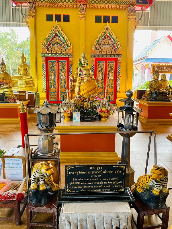 นอกจากนี้หลวงปู่แก้วหรือพระครูวินัยธรรมเมื่อครั้งท่านเป็นเจ้าอาวาสท่านได้จัดสร้างวัตถุมงคลเพื่อให้ญาติโยมนำไปบูชา เช่น ตะกรุดบังปืน ตะกรุดพิศสมรและผ้ายันต์ เป็นต้น หลวงปู่แก้วมรณภาพในปี พ.ศ. 2462 สิริอายุ 69 ปี 49 พรรษา “เที่ยวเมืองไทยไม่ไปไม่รู้ ถ้าอยากรู้ต้องออกเดินทางไป…กับ…ผมหนุ่ม’สุทน” ขอบคุณและสวัสดีครับ