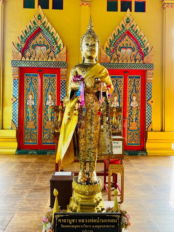 ถ้าผู้อ่านไปเที่ยวจสมุทรสงคราม อยากให้แวะวัดพวงมาลัยอยู่ริมแม่น้ำ วิวสวยงามแล้วเข้าชมวิหารที่ประดิษฐานองค์หลวงพ่อวัดบ้านแหลมจำลอง รูปหล่อหลวงปู่แก้วเก่าแก่ รูปหล่อหลวงปู่แก้วที่มีเสือโคร่งอยู่ด้านหลังและรอยพระพุทธบาทจำลองให้ปิดทอง พร้อมกราบขอพรตามความปรารถนาของแต่ละท่านได้ครับ