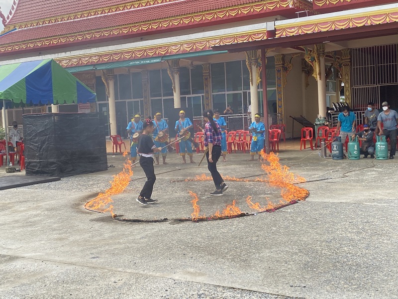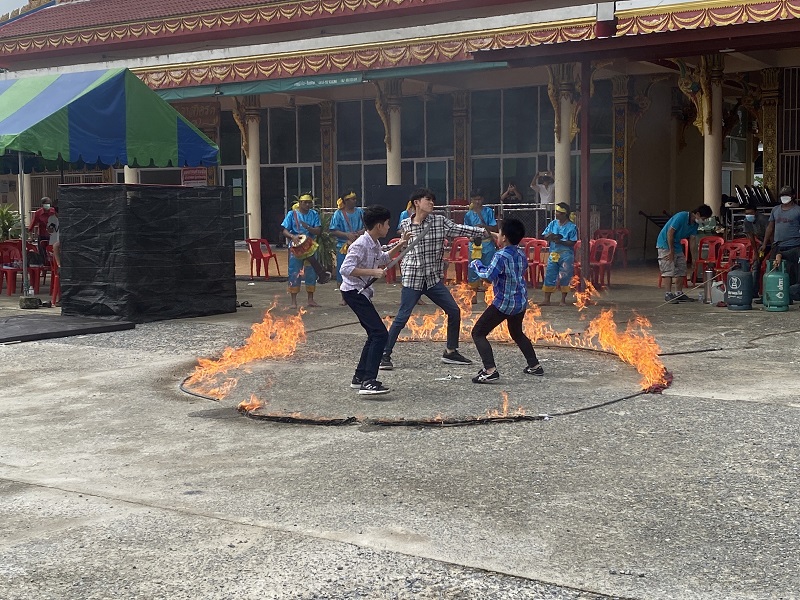 หลังจากผ่านสถานการณ์โควิดที่ระบาดหนักไปทั่วโลก ส่งผลกระทบมาถึงวงการบันเทิงในประเทศไทย ต้องยุติการถ่ายทำกันหมดนานนับปี จนสถานการณ์ดีขึ้นตามลำดับหลังจากที่ได้รับวัคซีนกันครบ 2 เข็ม ทางรัฐบาลเปิดโอกาสให้ เปิดกองถ่ายทำภาพยนตร์ได้ “แถวตรง แสบอีหลี” ซึ่งได้ซุ่มถ่ายทำไปได้ประมาณหนึ่งคือหลายสิบเปอร์เซ็นแล้ว วันนี้จึงนัดหมายทีมงานกองถ่ายกันขึ้น ดารานักแสดง ผู้แสดงสมทบ นับร้อยชีวิต เนรมิตลานวัดบึงทองหลางให้กลายเป็นลานวัฒนธรรมพื้นบ้านของชาวอีสาน สมมุติว่าเป็นลานบุญที่จะมีหนุ่มสาวมาร่วมฟ้อนรำ เซิงกระติ๊บ และ มีศิลปะกระบี่กระยอง ดาบ มาแสดงการร่ายรำ ฟาดฟัน ต่อสู้ให้โลกรับรู้ถึงศิลปะการต่อสู้ของชาวชนบท ที่นำมาแสดงต้อนรับแขกบ้านแขกเมือง ให้เห็นถึงความงดงามของศิลปะ