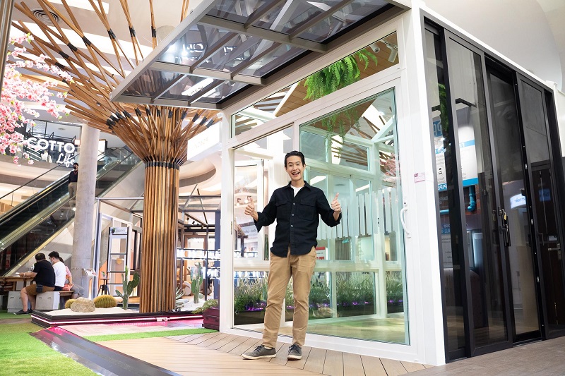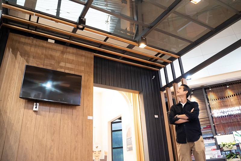 “เรารู้แค่ว่าเราต้องการอะไรที่มันมาบังแดดบังฝนได้ แต่เราเลือกไม่ถูกเหมือนกัน คิดกับแฟนนานแล้วครับ แต่ก็ยังคิดไม่ออกว่าภาพที่เราได้เห็นมา มันก็เป็นภาพกันสาดเดิมๆ ที่เราเคยเห็น เราก็รู้สึกมันโบราณจังเลย เราไม่อยากได้แบบนั้น เพราะฉะนั้นก็ต้องมาหาดู ถ้ามีคนแนะนำก็คงจะดี น่าจะใช้งานได้บ่อยมากยิ่งขึ้น” เราจึงชวนคุณโบมาเดินเล่น ชมวัสดุ และช้อปไอเดียการแต่งบ้านที่ SCG HOME Experience แห่งนี้