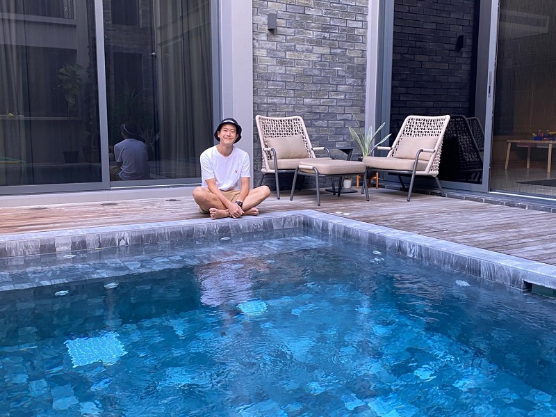 “โจทย์แรกของผมกับแฟนก็คืออยากมีสระว่ายน้ำ เรียกว่าเป็นพูลวิลล่าดีกว่า” คุณโบเล่า “เพราะเราเวลาไปเที่ยว เราก็จะเน้นไปทะเลเป็นหลัก หรือบางทีถ้าไม่เป็นทะเล อย่างน้อยห้องพักจะต้องมีพูลวิลล่า แล้วเวลาไปพักผ่อน ผมกับแฟนเป็นคนที่ไม่ชอบออกเดินทางไปไหน คืออยู่แต่ในห้องจริงๆ แล้วก็สั่ง Room Service เราต้องการแค่แช่ ต้องการแค่ดื่มด่ำกับบรรยากาศ”