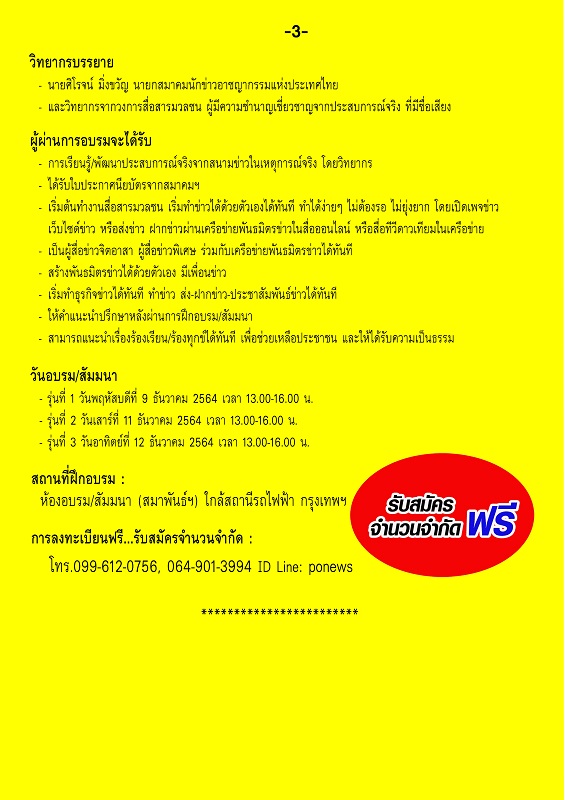 โทร. 099-612-0756, 064-901-3994 ID Line: ponews