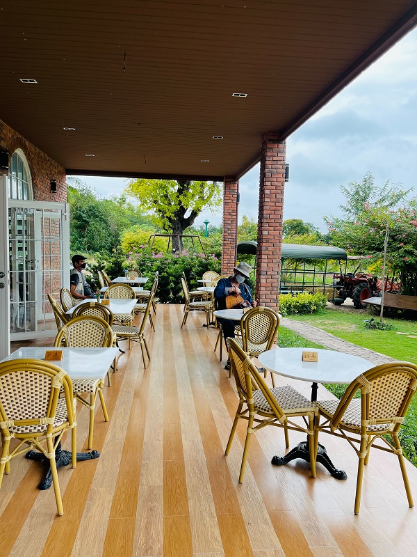 จุดสุดท้ายพลาดโอกาสไม่ได้ต้องมานั่งรับลมพัดเย็น ๆ ในโซนร้านอาหารและเครื่องดื่ม “Green Me farm’Organic’ Cafe” ที่นี่ให้บริการอาหารประเภทสเต็กโดยมีทั้งสเต็กปลา สเต็กหมูและสเต็กเนื้อ พลาดไม่ได้กับผักออร์แกนิคที่ทางฟาร์มปลูกเอง เลือกได้ตามเมนูของร้านครับ มีให้เลือกหลากหลายเมนู สำหรับคอกาแฟสดรสชาติเข้มข้นสั่งได้ทั้งร้อน เย็น ส่วนหนุ่ม’สุทน ไม่พลาดต้องลองเอสเพรสโซ่ร้อน 1 ช็อต ได้นั่งจิบกาแฟสดเข้ม ๆ เพลิน ๆ เลือกเป็นมุมนั่งเล่นได้ทั้งด้านนอกและด้านในเลือกได้ตามอัธยาศัยครับ รับรองจะต้องถูกใจคอแกแฟแน่นอนครับ สุขใจแท้ ๆ ยิ่งช่วงนี้อากาศกำลังเย็นสบาย ๆ ความสุขหาได้ที่นี่ครับ