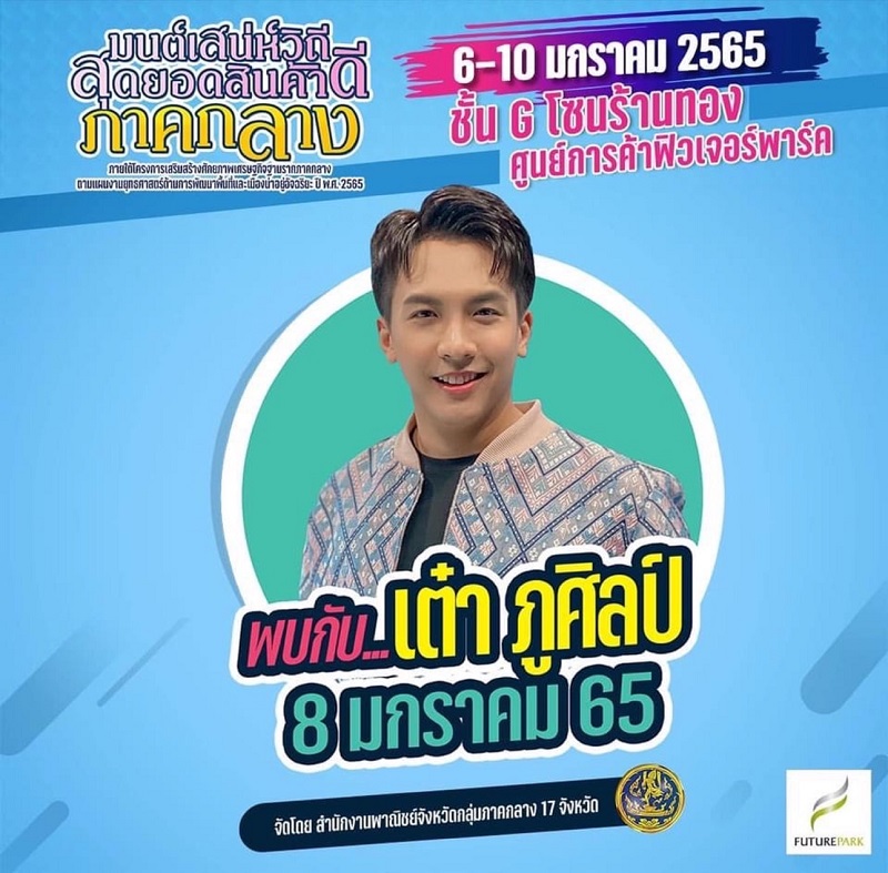 สำนักงานพาณิชย์จังหวัดกลุ่มภาคกลาง 17 จังหวัด กระตุ้นเศรษฐกิจ ภายใต้วิถี New Normal ขอเชิญเที่ยวชมงาน “มนต์เสน่ห์วิถี สุดยอดสินค้าดีภาคกลาง” ภายใต้โครงการเสริมสร้างศักยภาพเศรษฐกิจฐานรากภาคกลาง ตามแผนงานยุทธศาสตร์ด้านการพัฒนาพื้นที่และเมืองน่าอยู่อัจฉริยะ ปี 2565 เดินเพลิน ช้อปมัน(ส์) สุดยอดของดี ของเด่น กลุ่มภาคกลาง 17 จังหวัดโดยจัดขึ้นระหว่างวันที่ 6 – 10 มกราคม 2565 ณ ชั้น G ศูนย์การค้าฟิวเจอร์พาร์ค จ.ปทุมธานี โดยยกทัพสินค้าขึ้นชื่อและของดีประจำจังหวัดนำมาจำหน่ายภายในงาน อาทิ ผลิตภัณฑ์ชุมชน สินค้าเกษตรปลอดภัย สินค้าเกษตรอินทรีย์ เกษตรแปรรูป สินค้าอุตสาหกรรม และอื่นๆ กว่า 60 ร้านค้า ที่จะมาร่วมแสดงและจัดจำหน่ายทั้งสินค้าเกษตร อาหาร เครื่องอุปโภค และผลิตภัณฑ์ท้องถิ่น นอกจากนี้ยังมีกิจกรรมความบันเทิงจากเหล่าศิลปินนักร้องชื่อดังที่จะมาร่วมสร้างสีสันภายในงาน เริ่มตั้งแต่