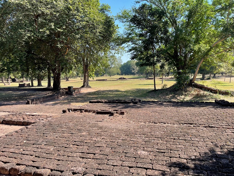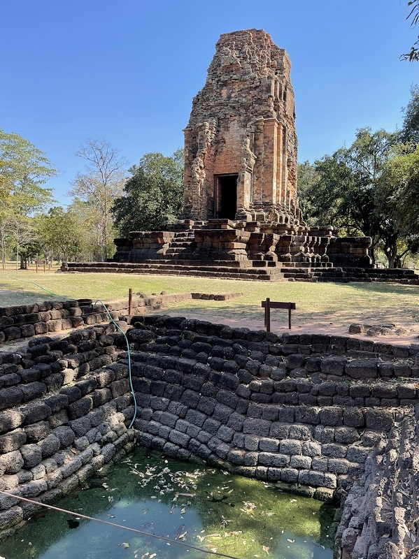 จุดแรกเจ้าหน้าที่พาแวะให้ชมคือหลุมฝังศพตามความเชื่อเมื่อ 1,700 ปี เสร็จแล้วมา จุดที่ 2 องค์ปรางค์สองพี่น้องหรือถ้าตามหลักพระพุทธศาสนาจะเรียกพระปรางค์สองพี่น้อง องค์ปรางค์น้องมีทับนารายณ์ดั้งเดิมยังคงสวยงามมาก ๆ สำหรับปรางค์องค์พี่เมืองชั้นในสุดสันนิษฐานว่าเป็นเทวลัยใช้ประกอบพิธีทางศาสนาพราหมณ์-ฮินดูและพุทธมหายานถือว่าเป็นสถานที่ศักดิ์สิทธิ์มีบ่อน้ำเล็ก ๆ ใช้ประกอบในพิธีกรรมอันศักดิ์สิทธิ์เมื่อครั้งกระนู้น ถัดไปคือคลังในหรือองค์เจดีย์ใหญ่ส่วนด้านล่างขององค์เจดีย์มีรูปปั้นคนแคระล้อมรอบยกตัวเจดีย์ขึ้นไว้เป็นความเชื่อของคนสมัยนั้นว่าคนแคระนี้มีทางสวรรค์อันวิเศษคล้าย ๆ ผู้มีพลัง