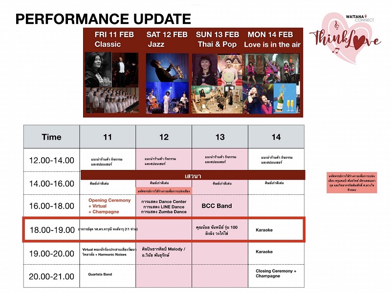 #ThinkLove รวมเมนูเด็ดอาหารดังและสินค้าหลากชนิดกว่า 50 ร้านค้า รวมถึงอาหารโรงเรียนที่ทุกคนคิดถึง และกิจกรรมสนุกๆ ทั้ง เสวนาหลากสไตล์ Coffee & Wine Tasting และ โชว์พิเศษจากศิษย์เก่าและศิษย์ปัจจุบันไม่ซ้ำกันแม้แต่วันเดียว