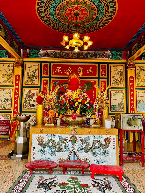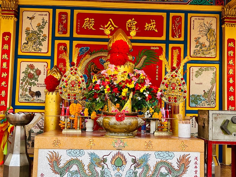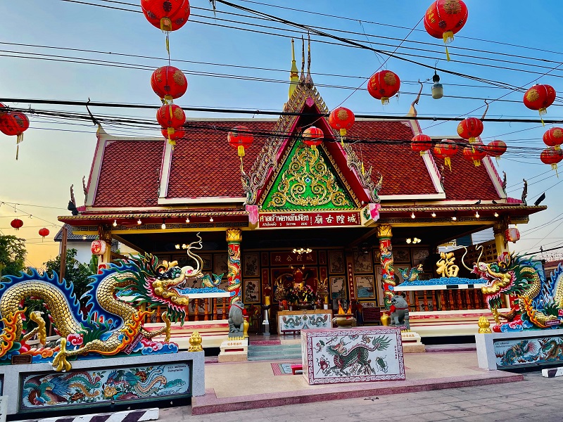 เมื่อถึงบ้านสิงห์ท่าแล้ว จุดเริ่มต้นของการเที่ยวชมต้องกราบขอพร “ศาลเจ้าพ่อหลักเมืองบ้านสิงห์ท่า” เมืองยโสธร ตัวศาลเจ้าพ่อหลักเมืองเป็นศิลปะ 3 วัฒนธรรมคือ พญามังกรศิลปะจีน หลังคายอดเป็นองค์พระธาตุศิลปะลาวและหลังคาศิลปะชาวไทย