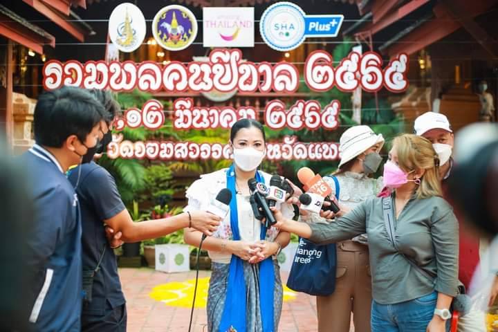 นางสาวฐาปนีย์ เกียรติไพบูลย์ รองผู้ว่าการด้านตลาดในประเทศ การท่องเที่ยวแห่งประเทศไทย กล่าวถึง บทบาทการเชื่อมโยงการกระตุ้นการตลาดเพื่อส่งเสริมการท่องเที่ยวจังหวัดแพร่ของ ททท. นอกจากการจัดทำประชาสัมพันธ์กิจกรรมทางการท่องเที่ยวรูปแบบต่างๆ เพื่อสร้างการรับรู้แก่นักท่องเที่ยวแล้ว ยังผลักดันแนวคิดเรื่อง “เสน่ห์การท่องเที่ยวย้อนวันวานเพื่อนำเสนอประสบการณ์รูปแบบใหม่” ให้นักท่องเที่ยวได้รู้จักจังหวัดแพร่ในอีกมิติหนึ่ง สอดแทรกกิจกรรมท่องเที่ยวสร้างสรรค์ “ถวายตุงไชย” เปิดประสบการณ์ให้นักท่องเที่ยวได้รู้จักเมืองแพร่ เมืองแห่งตุง สัมผัสบรรยากาศเสน่ห์วันวานเมืองเหนือดั้งเดิมที่มีความเนิบช้าและน่าหลงใหลอันเป็นเอกลักษณ์ นอกจากนี้ ททท. ยังได้จัดกิจกรรมกระตุ้นการท่องเที่ยวสอดรับกิจกรรมปีขาลของจังหวัด ด้วยแคมเปญ #เสือนอนกิน ในช่วงเดือนมกราคม – มีนาคม 2565 โดยร่วมมือกับสถานประกอบการท่องเที่ยว จำนวน 55 แห่ง ที่ผ่านมาตรฐาน SHA และ SHA PLUS มอบคูปองส่วนลดมูลค่า 200 บาท/คน สำหรับผู้ที่เกิดในนักษัตร “ปีขาล” และ “ปีชง” ที่จองและชำระเงินค่าห้องพักตามเงื่อนไขกิจกรรมฯ อีกทั้ง ททท.ขอแนะนำ กิจกรรมผ่อบ้านแอ่วเวียงยามค่ำ เป็นกิจกรรมสันทนาการรูปแบบใหม่ ด้วยรูปแบบการนั่งรถรางผ่านแหล่งท่องเที่ยวสำคัญ ชมความงดงามเมืองแพร่ ซึ่งได้รับรางวัลดีเด่นอุตสาหกรรมท่องเที่ยวไทย ประเภทแหล่งท่องเที่ยว สาขาแหล่งท่องเที่ยวนันทนาการและความบันเทิง (รางวัลกินรี ปี 2564)