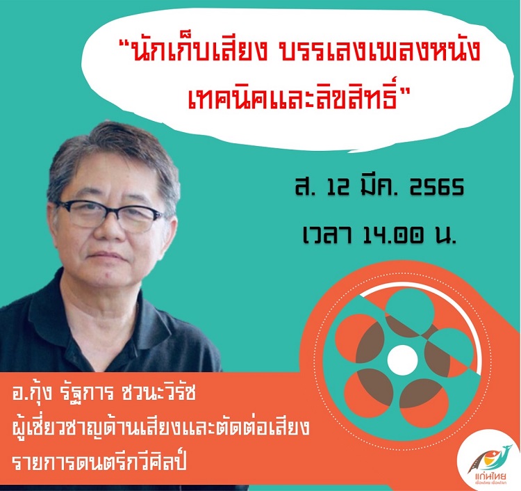 หัวข้อ “นักเก็บเสียง บรรเลงเพลงหนัง” เทคนิคการบันทึกเสียงการถ่ายทำ การใช้เพลงประกอบกับลิขสิทธิ์ โดย อาจารย์กุ้ง รัฐการ ชวนะวิรัช ผู้เชี่ยวชาญด้านการตัดต่อเสียง ทางช่อง ThaiPBS