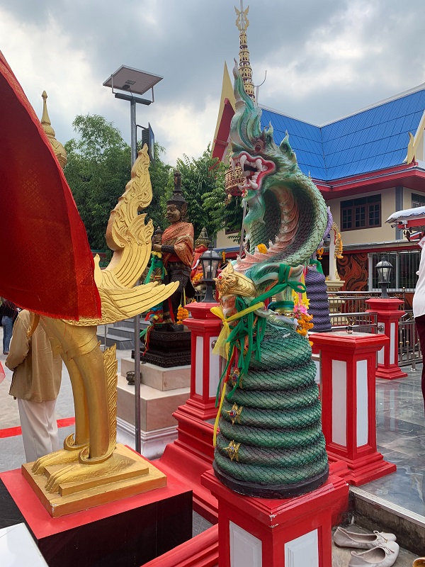 วัดนี้มี รูปปั้นอันงดงามวิจิตร ท้าวเวสสุวรรณ ตั้งตระหง่าน พญาครุฑ พญานาค กินรี มาไหว้บูชาได้ครบทุกองค์ บริเวณวัดโดยรอบมีพระพุทธโสธรจำลอง พระพุทธรูปหินอ่อนศิลปะพม่า และเจ้าแม่กวนอิมโพธิสัตว์ซึ่งสลักด้วยหินอ่อนจากอิตาลี