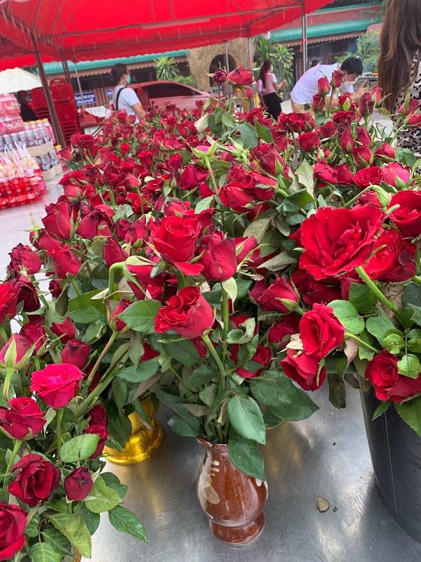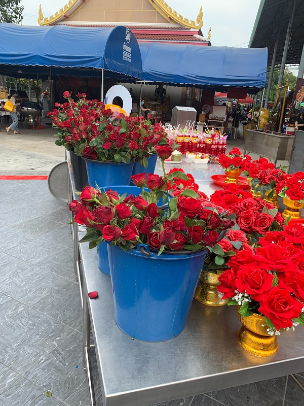 บางคน ก็เลือกที่จะใช้ ดอกกุหลาบสด9ดอก ธูป เทียนสีแดง ธูป จุดขอเลขมงคล ที่วางไว้ให้หยิบเอง และใส่ตู้ทำบุญ ตามกำลังศรัทธา