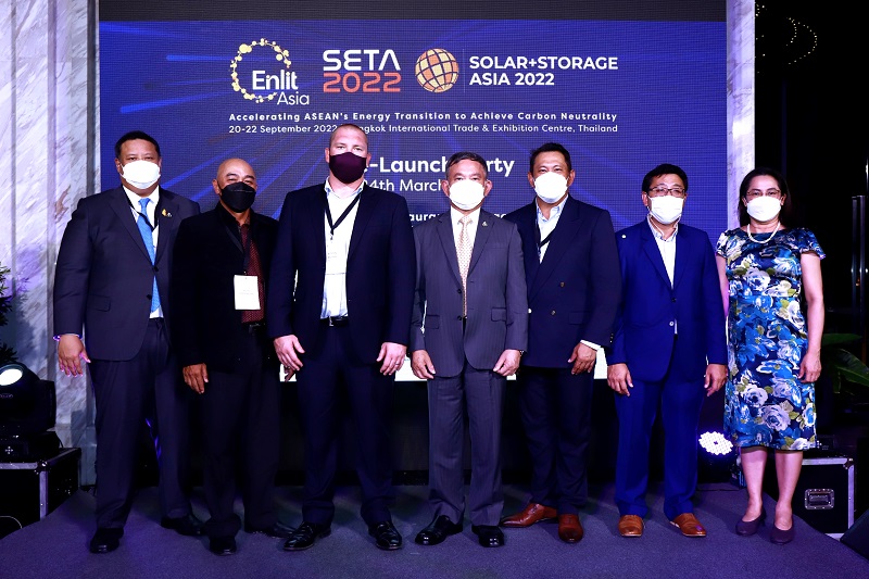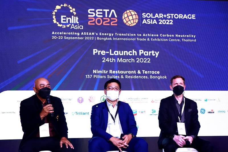 ด้าน ดร.ประจิน จั่นตอง ประธานในพิธีการจัดงาน SETA 2022, SOLAR+STORAGE ASIA 2022 & Enlit Asia กล่าวว่า ปีนี้ SETA จะได้จัดงานร่วมกับ SOLAR+STORAGE ASIA 2022 (SSA) อันเป็นงานด้านเทคโนโลยีพลังงานแสงอาทิตย์และระบบกักเก็บพลังงานของเอเชีย จะจัดเป็นครั้งแรกในประเทศไทย และงาน Enlit Asia 2022 ซึ่งเป็นงานด้านผู้ผลิตกระแสไฟฟ้าและโครงข่ายไฟฟ้าของโลก ภายใต้หัวข้อ “Accelerating ASEAN’s Energy Transition to Achieve Carbon Neutrality” เพื่อให้สอดคล้องกับนโยบายพลังงานและเศรษฐกิจของรัฐบาล ตามการประกาศเจตนารมณ์ในเวทีการประชุม COP26 ผู้นำโลกร่วมเจรจา เร่งดำเนินงานแก้ปัญหาการเปลี่ยนแปลงสภาพภูมิอากาศ และลดก๊าซคาร์บอนไดออกไซด์ของประเทศตนเอง ด้วยความร่วมมือระหว่างประเทศทั่วโลกที่จะร่วมมือกันทุกภาคส่วน สนับสนุนการใช้พลังงานที่ยั่งยืนอย่างจริงจัง สร้างความแข็งแกร่ง และขยายฐานลูกค้าในกลุ่มพลังงาน โดยปีนี้จะเน้นเรื่องการเปลี่ยนถ่ายไปสู่การใช้เทคโนโลยีสะอาด