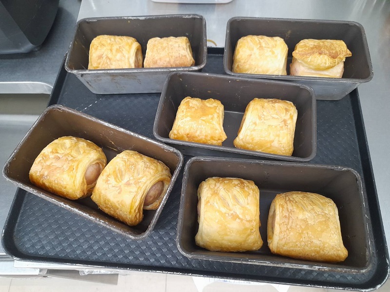 ซึ่งครั้งนี้จะมาเล่าเรื่องของขนม ขนมที่น้อง ๆ เซเว่นได้รับมอบหมายจากโครงการโดยก่อนหน้าจะมีขนมมาส่งแต่ครั้งนี้ต้องทำกันเอง รวมทั้งพิซซ่าหน้าต่าง ๆ ด้วย เลยอยากชมคือ “เยอรมันครัวซองต์” เป็นครัวซองต์ชิ้นเท่าฝ่ามือสอดไส้ไส้กรอกชิ้นเบ้อเริ่ม เราได้รู้จากน้องเซเว่นว่าจะเปิดเตาอบขนมกัน วันแรกจึงไปอุดหนุนเยอรมันครัวซองต์เพื่อเป็นกำลังใจ แล้วหลังจากได้ทานเนื้อของครัวซองต์แตะกับไส้กรอกยังไม่แห้งเลยบอกให้น้องไปปรับปรุง แล้วเราก็กลับไปชิมอีกครั้งปรากฏว่า อืมม..อร่อยขึ้น เลยสั่งออร์เดอร์ “เยอรมันครัวซองต์” สิบกว่าชิ้นไปฝากเพื่อน ๆ ทีมข่าวให้ชิม พอทุกคนได้ทานก็ถามประโยคเดียวกันว่า “ทำเองเหรอ” “อร่อย” เลยตอบไปว่า “เปล่า สั่ง 7-Eleven ทำ” พอเพื่อน ๆ ได้ทานต่างติดอกติดใจขอให้ช่วยสั่งไปส่งที่บ้านโดยยอมจ่ายค่า grab เพราะไปหาที่เซเว่นแถวบ้านไม่มี นอกจากทดสอบจากลิ้นของเราหรือเพื่อน ๆ ทีมข่าวสิบกว่าคนแล้วโดยทางร้านไม่รู้ว่าเราจะเชียร์ เรายังไม่หยุดบททดสอบจึงสั่งไปให้หัวหน้าข่าวทานก็มีเสียงชมกลับมาพร้อมบอกว่าไส้กรอกชิ้นใหญ่ดีครับ เมื่อได้ฟังเช่นนั้นก็บอกน้อง ๆ ถึงคำชมทั้งหลายเพื่อเป็นกำลังใจในการทำงานชิ้นใหม่ที่ไม่ได้ง่ายเลย ทว่าน้อง ๆ เซเว่นก็ใส่ใจทำอย่างเต็มที่และเพิ่มพูนวิชาความรู้ใส่ตนเองด้วย