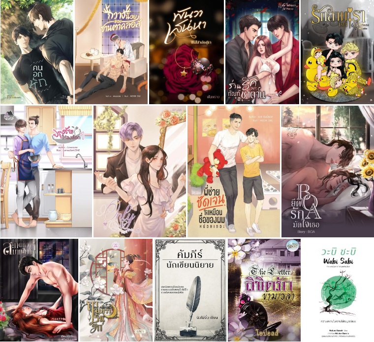 แกะซีลหนังสือดี : ปรุงรักให้ลงล็อก , Only One รักคุณเพียงหนึ่งค่า , พี่ช่วยชัดเจนให้เหมือนชื่อของผมหน่อยเถอะ , BOA ยึดรัก รัดใจเธอ , คนอกหัก (ตัวละครมาจาก จีบคนเถื่อน, เพื่อนไม่จริง) , กวางน้อยของซานตาคลอส , พันวาเสน่หา (ซีรีส์สาปอสุรา) , ร่านรัก ทัณฑ์ซาตาน [3P] , รักสามเรา [3P] , สะกิดหัวใจมาเฟียโหด , ฤาจันทราเร้นรัก , คัมภีร์นักเขียนนิยาย , ลิขิตรักข้ามเวลา : The Letter , วะบิ ซะบิ ความงดงามในความไม่สมบูรณ์แบบ ,