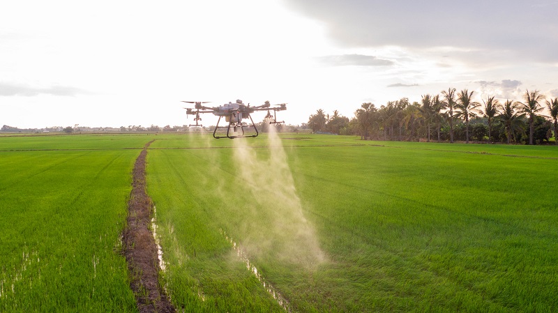 คุณรัตยา เฉลิมวงศ์ ประธานเจ้าหน้าที่ฝ่ายผลิตภัณฑ์ บริษัท ดีจีไอ โปรดักชั่น จำกัด กล่าวเพิ่มเติมว่า “โดรนเกษตร คืออากาศยานไร้คนขับ ที่ใช้งานทางการเกษตร ปัจจุบันมีทั้งการฉีดพ่นสารน้ำ การหว่านปุ๋ยและเมล็ดพันธุ์ การถ่ายภาพเพื่อสำรวจคุณภาพผลผลิต โดยปัจจุบันกว่า 90% ของโดรนเกษตร จะอยู่ในรูปแบบของการพ่นสารน้ำ การหว่านปุ๋ยและเมล็ดพันธุ์ โดรนเกษตรมีแนวโน้มเติบโตในตลาดขึ้นอย่างต่อเนื่องทุกปี โดยปี 2564 เติบโตขึ้นถึง 200% เมื่อเทียบกับปีที่ผ่านมา ซึ่งโดรนเกษตรเข้ามาทดแทนการทำงานเดิมที่เกษตรกรต้องแบกเครื่องพ่นสะพายหลัง ที่มีขนาดถังบรรจุถึง 25 กิโลกรัม ส่งผลเสียต่อเกษตรกรในด้านสุขภาพ และใช้ระยะเวลานานในการทำงาน ไม่สม่ำเสมอ รวมทั้งมีข้อจำกัดในบางช่วงอายุของพืช เช่น ช่วงข้าวออกรวง หรือพืชสูง เป็นต้น โดรนเกษตรจึงเข้ามาตอบโจทย์ ลดระยะเวลาการทำงานให้แก่เกษตรกร เพิ่มคุณภาพการฉีดพ่นที่ทั่วถึงด้วยระบบการวางแผนงานอย่างครอบคลุม และสามารถใช้งานกับพืชได้หลากหลายชนิด ทุกช่วงอายุของพืช พร้อมสร้างอาชีพให้แก่คน รุ่นใหม่ ที่หันมาทำการเกษตรผ่านเทคโนโลยีกันมากขึ้น”