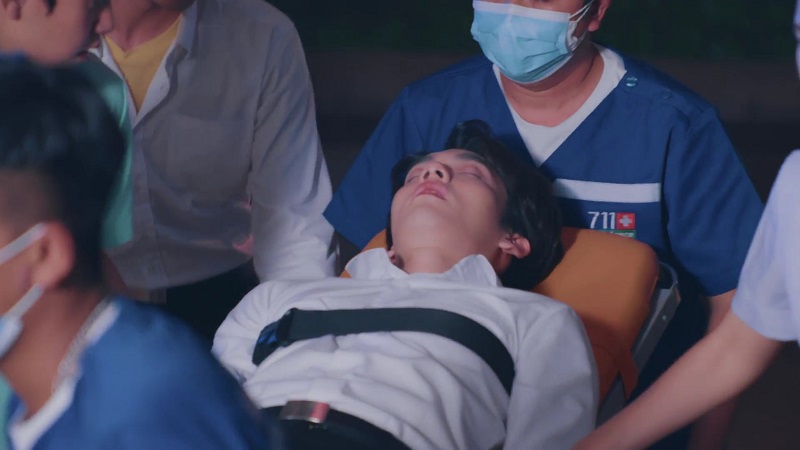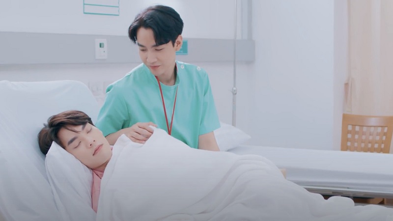 โดยเป็นฉากที่เตอร์ (อัส-นิติธร อัครโชติโสภณ) ไค (ช้าง-ชยพล เชี่ยวพิทยาการ) สองเพื่อนแสบของจิ้งวางแผนให้คณะขับรถชนจิ้ง และเรียกรถพยาบาลให้มารับ เพื่อสร้างสถานการณ์ให้กายสนใจ เพราะจิ้งคิดน้อยใจว่า “ถ้าไม่อยู่ในฐานะคนไข้พี่กายก็ไม่เคยสนใจ” บอกเลยว่าเรียกคะแนนความเอ็นดูจากบรรดาแฟนคลับได้อย่างล้นหลามทีเดียว