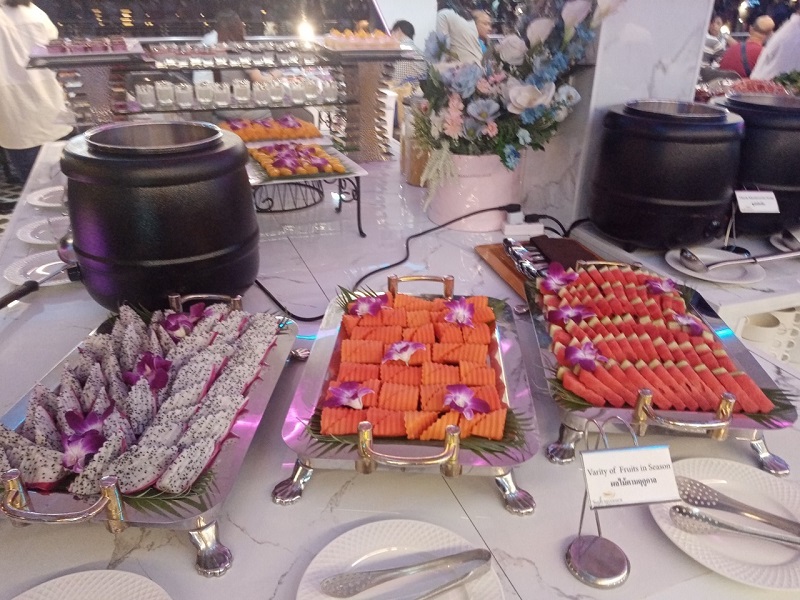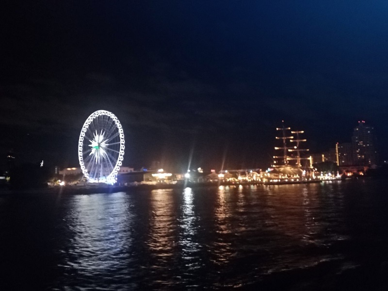 จุดนัดพบเพื่อลงเรือที่ท่าเรือของศูนย์การค้าไอคอนสยาม ย่านคลองสานศูนย์การค้าชื่อดังที่มีความพร้อมและความสวยงาม ที่จะทำให้นักท่องเที่ยวได้อิ่มเอมกับเทศกาลผลไม้โดยเฉพาะทุเรียนในยามนี้มีบุพเฟต์ทุเรียนให้ได้ลองลิ้มชิมกันกับทุกเรียนหลากหลายสายพันธุ์ทั่วประเทศ มาอยุ่ตรงนี้ ก่อนที่จะลงเรือสำราญ มีการตรวจวัดทุกคนก่อนขึ้นเรือ ช่วงหัวค่ำมีการแสดงน้ำพุดนตรีของทางศูนย์การค้าไอคอนสยาม แสดงให้ชมเป็นบุญตา แล้วมาเช็กบัตรที่นั่งบนเรือว่านั่งตรงจุดไหน พวกเราสั่งจองในโซน S1 ซึ่งอยู่ใกล้ที่ตั้งอาหารมากที่สุด ตรงหัวเรือจะเป็นเวทีการแสดงรำไทย และ มีดนตรีขับกล่อมตลอดเส้นทางเดินเรือสำราญคืนนี้