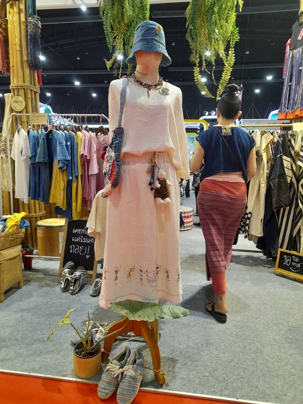 ซึ่งภายในงานมีสินค้าและผลิตภัณฑ์ OTOP กว่า 2,000 บูธ OTOP ชวนชิมมากกว่า 160 ร้านค้าทั่วประเทศ ต่างตบเท้ามาตั้งร้านต้อนรับขาช้อป ตั้งแต่วันที่ 4- 12 มิถุนายน ณ ชาเลนเจอร์ฮอลล์ 1- 3 ไปช่วยอุดหนุนของคนไทยกันเยอะ ๆ โดยหนึ่งในบูธที่มาเปิดเป็นเสื้อผ้าทำจากผ้าทอมือผลิตจากธรรมชาติ นำโดย โบ จากร้าน “Indy Eko” กล่าวว่า “มาจากบูธ ‘สารพัดสรรพศิลป์’ ค่ะ ก็เป็นของประชารัฐสามัคคี เป็นการร่วมกันของภารรัฐและเอกชนก็คือ บริษัท ไทยเบฟเข้าไปพัฒนาสินค้ารวมถึงหาช่องทางการตลาด ของหนูเป็นร้าน “Indy Eko” มาจากแพร่ คือการอนุรักษ์ปลูกฮ่อมย้อมฮ่อม ฮ่อมก็คือสีคราม และก็ทำเป็นแบรนด์เสื้อผ้าครอบครัว พ่อ แม่ ลูก สามารถใส่ได้ทั้งหมดค่ะ รวมถึงเอาสีสันของธรรมชาติเข้ามาทำเสื้อผ้าค่ะ”