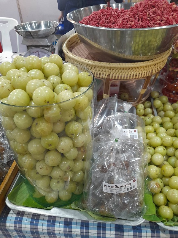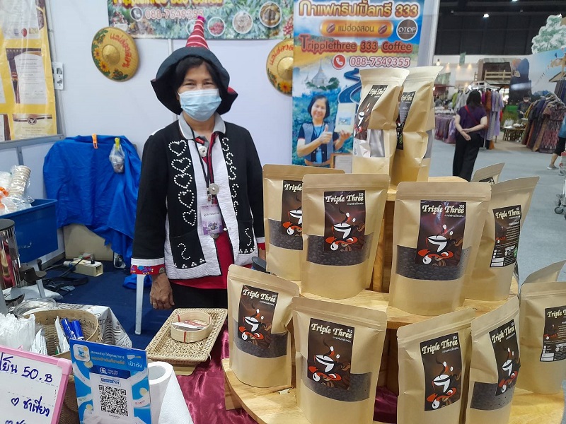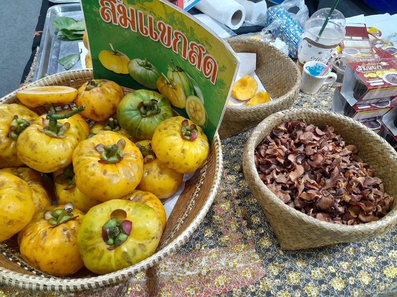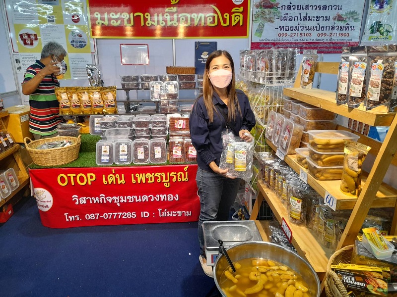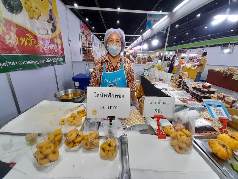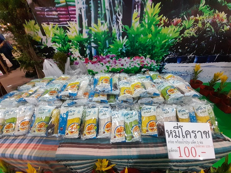 นอกจากนี้ยังมีผลิตภัณฑ์ OTOP อีกหลายบูธจากหลายจังหวัดที่ขนมาจำหน่ายในงานอย่างมากมาย อาทิ เครื่องทอง พวกไม้แกะสลัก กล้วยตากเจ๊มวย ที่เป็นพระเอกก็กล้วยม้วน กล้วยอบธรรมชาติ และมะม่วงกวนพิมเสน รสชาติเปรี้ยว ๆ หวาน ๆ ครั้นเดินไปอีกก็เจอมะขามแช่อิ่มที่มีให้ชิม ชิมแล้วลูกค้าก็อดซื้อกลับบ้านไม่ได้เพราะติดใจรสชาติ แล้วเมื่อเดินเรื่อยไปก็เจอ “โดนัทฟักทอง” ก็เพิ่งเคยทานราคาถุงละ 20 บาท แต่ที่โดดเด่นคือ ‘ผลส้มแขก’ ทั้งแบบสดแบบแห้งให้ลูกค้าได้แวะถาม เพราะบางคนก็ไม่เคยเห็น ซึ่งป้าเจ้าของร้านนำมาจำหน่ายพร้อมกับน้ำพริกตาแดงส้มแขกในราคาไม่แพง จากนั้นก็เดินไปเกือบสุดท้ายโซนอาหารคาวและหวานเห็นแล้วหิวเพราะละลานตาจนกระเป๋าสตางค์สั่นแล้วสั่นอีก ทำให้อดไม่ได้ต้องอุดหนุนร้าน “ธนิดา” ลอดช่องสิงคโปร์ ที่บอกว่ามาเปิดทุกปี ขนเครื่องขนมและความอร่อยมาทำสด ๆ ให้เห็นตรงนั้น แม้แต่ซาลาเปาทอดก็ทอดให้ได้กลิ่นหอมตรงนั้นเช่นกัน หอมกลิ่นของหวานก็ไปส่องของคาวร้านอาหารใต้หลากเมนูอาหารถาด รวมทั้ง ไก่บางตาล ก็ปิ้งยั่วน้ำลายจนอดซื้อกันไม่ได้ หรือแม้แต่ “กาแฟ ทริปเปิ้ลทรี 333” ที่ลงมาจากแม่ฮ่องสอนให้ชิมความเข้มข้นกลมกล่อม แวะเข้าไปแชะภาพพร้อมถามถึงชื่อ ก็ได้รู้ว่าร้านตั้งอยู่บ้านเลขที่ 333 นั่นเอง นี่ยังไม่หมดแค่นี้เป็นเพียงส่วนนึงที่เก็บภาพมาฝากขาช้อปเท่านั้น สำหรับงานมีถึงวันที่ 4 – 12 มิถุนายน ณ เมืองทองธานี ชาเลนเจอร์ 2