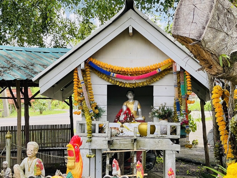 สุดท้ายก่อนกลับก็ไปขอพรสิ่งศักดิ์สิทธิ์ประจำชุมชนบ้านสุขสมบูรณ์กันสักหน่อยคือ “ศาลพ่อปู่เมืองราช” ขอให้ตั้งจิตใจสงบนิ่งอธิษฐานขอพรได้ทุกเรื่อง เช่น เรื่องการค้าการลงทุนและความปลอดภัยในชีวิตและทรัพย์สิน เป็นต้น
