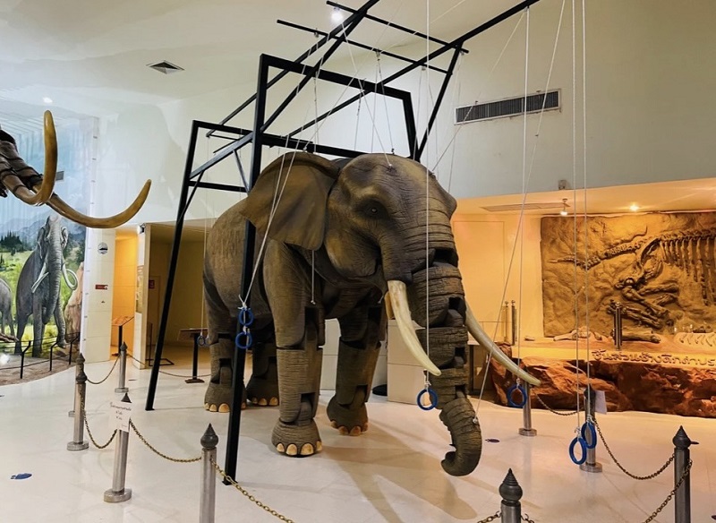 เสร็จแล้วพวกคณะเราก็ไปที่อาคารที่ 2 ในห้องแรกจัดแสดงเรื่องราวของ “ช้างดึกดำบรรพ์ 10 สกุล” เช่น ช้างงาจอบ ช้างงาเหลี่ยมและช้างสี่งา เป็นต้น ส่วนห้องถัดไปจัดแสดง “สัตว์โลกล้านปีหรือไดโนเสาร์” อันนี้น้องๆ หนู เด็กๆ จะชื่นชอบมากเป็นพิเศษ