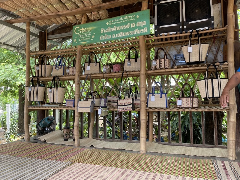 จากนี้ต่อไป เราก็ไปกันที่อำเภอเฉลิมพระเกียรต์กันต่อครับเพื่อไปเที่ยวชุมชนช้างดึกดำบรรพ์ “หมู่บ้านใหม่-ช้างดึกดำบรรพ์ 10 สกุล” ติดกับลำน้ำมูลอำเภอเฉลิมพระเกียรติ ที่นี่เป็น “วิสาหกิจชุมชนท่องเที่ยวท่าช้างโคราชจีโอพาร์ค” มีการทอเสื่อกกแล้วแปรรูปเป็นกระเป๋าถือสุภาพสตรีสวยงามมากๆ เป็นสินค้าท้องถิ่นที่สร้างรายได้ให้กับครอบครัวของชาวชุมชนบ้านใหม่-ช้างดึกดำบรรพ์อย่างเยี่ยมยอดครับ