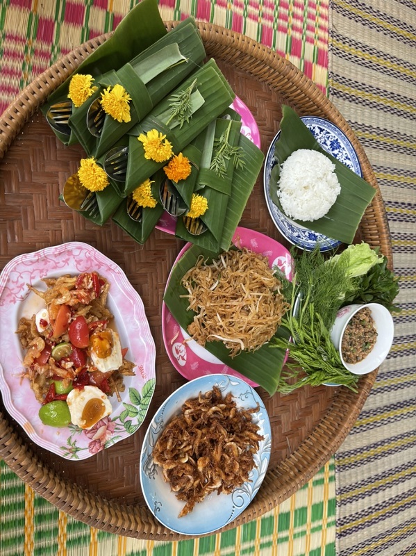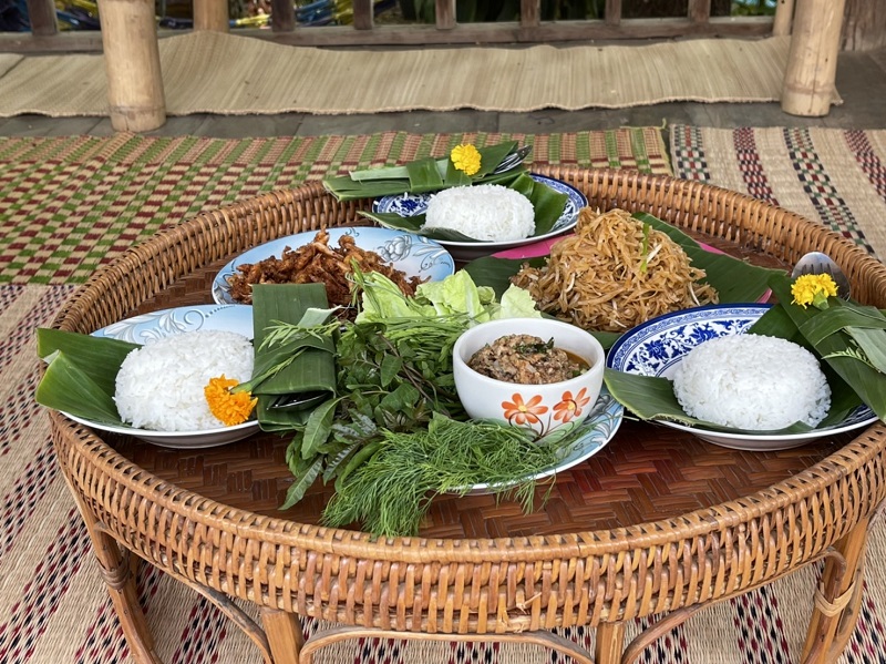 เที่ยวเพลินจนได้เวลาอาหารมื้อกลางวันพอดีครับ เขาเสิร์ฟส้มตำมาให้ลิ้มลอง ผมเลยตั้งชื่อให้ว่า ส้มตำงานช้าง 10 สกุล (เท่ๆ เรียกความเอ๊ะๆ น่าลอง) ตามมาด้วยน้ำพริกปลาป่นที่ใช้ปลาในลำน้ำมูลมาทำ เผ็ด ๆ เปรี้ยวนิดๆ อร่อยมากๆ ต่อด้วยกุ้งฝอยทอดลำน้ำมูลและก็มาถึงเมนูห้ามพลาดกับผัดหมี่โคราช อาหารท้องถิ่นแท้จริงของเมืองโคราช อร่อยถูกปากถูกใจคณะสื่อมวลชนเลยทีเดียว