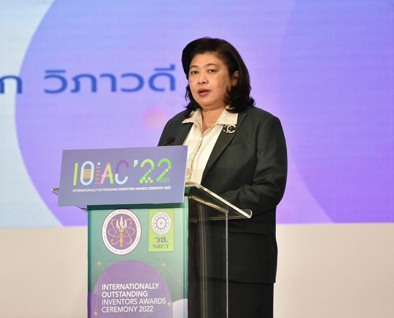 ดร.วิภารัตน์ ดีอ่อง ผู้อำนวยการสำนักงานการวิจัยแห่งชาติ กล่าว วช. ขอแสดงความยินดีและเป็นกำลังใจให้กับนักวิจัยและนักประดิษฐ์ทุกท่านที่ได้รับรางวัลจากเวทีนานาชาติ รวมทั้งผู้บริหารหน่วยงาน ผู้ที่เกี่ยวข้องกับการวิจัยและการประดิษฐ์คิดค้น ในการส่งเสริมและสนับสนุน จนเกิดผลงานที่สามารถนำไปใช้ประโยชน์ในการพัฒนาประเทศ ตลอดระยะเวลา 10 ปีที่ผ่านมา วช. ได้ดำเนินโครงการส่งเสริมผลงานวิจัยและสิ่งประดิษฐ์สู่เวทีนานาชาติในฐานะหน่วยงานเสนอชื่อและนำส่งผลงานเข้าร่วมประกวดในเวทีนานาชาติของประเทศไทยกว่า 300 ผลงาน ทั้งในเวทีหลัก และเวทีประสานกว่า 10 เวที โดย วช. เป็นผู้ประสานหลักเป้าหมายเพื่อเปิดโอกาสให้นักประดิษฐ์ไทย ได้รับองค์ความรู้ใหม่และแลกเปลี่ยนประสบการณ์ ด้านการวิจัยและการประดิษฐ์กับนักวิจัยชาวต่างประเทศในการพัฒนาผลงานให้เป็นที่ยอมรับอย่างกว้างขวางผลงานได้รับการรับรอง โดยมาตรฐานสากลซึ่งจะเป็นการเพิ่มมูลค่าให้กับผลงานทั้งเชิงพาณิชย์และเชิงสังคมตลอดจนเกิดความร่วมมือระหว่างนักวิจัยไทยและนักวิจัยนานาชาติในการสร้างสรรค์ ผลงานวิจัยและสิ่งประดิษฐ์ที่เป็นประโยชน์ในมิติต่างๆ อย่างเป็นรูปธรรมในระดับสากล ดังนั้น วช. จึงมีความมุ่งมั่นในการส่งเสริมและผลักดันให้ ผลงานวิจัยและผลงานสิ่งประดิษฐ์คิดค้นของนักวิจัยและนักประดิษฐ์ไทยได้ก้าวสู่เวทีระดับโลกผ่านการดำเนินงานร่วมกับพันธมิตรจากต่างประเทศ ได้แก่ IFIA และ WIIPA ซึ่งเป็นองค์กรกลางของหน่วยงานด้านการส่งเสริมสิ่งประดิษฐ์และนวัตกรรมนานาชาติ จากการจัดงานในวันนี้เป็นการแสดงให้เห็นถึงความสำเร็จของนักประดิษฐ์และนักวิจัยไทยที่สามารถคว้ารางวัลจากการประกวดนับตั้งแต่ต้นปีงบประมาณ 2565 จนถึงปัจจุบัน รวมจำนวนทั้งสิ้น 164 ผลงาน จาก 11 เวที ระดับนานาชาติ ประกอบด้วย