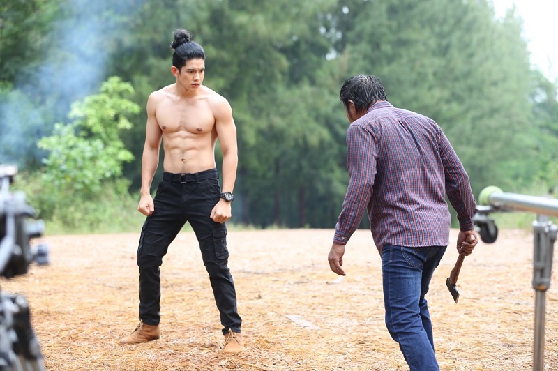 “มนต์รัก วัวชน เป็นงานหนังเรื่องที่สองของผมครับ เรื่องนี้เล่นเป็นตำรวจนอกเครื่องแบบ บุคลิกนิ่ง ๆ ขี้สงสัย ขี้เล่น หยอกล้อเก่ง เป็นคู่กัดกับลิลลี่ที่เราเล่นด้วยกันเป็นเรื่องที่สองแล้วจากเรื่องแรกมนต์รักดอกผักบุ้งฯ มาร่วมงานกันอีกครั้ง ก็ไม่เกร็ง ไม่ได้เขินมาก เล่นกับน้องได้เยอะขึ้น จริง ๆ แล้วน้องน่ารักนะ นิสัยดีและเล่นเก่งมาก ผมแอบชื่นชมเพราะเขาเล่นเก่งจริง ๆ ส่วนฉากกุ๊กกิ๊กในเรื่องก็มีนิดหน่อยครับต้องไปชมกันในหนัง ส่วนผมก็จะหนักไปทางฉากบู๊ที่ผมถนัด บู๊เยอะมากครับ มาเล่นเรื่องนี้ได้เพราะบทบู๊เยอะ โดยเฉพาะฉากบู๊ที่ลุยตามไล่ล่าผู้ร้าย ผู้กำกับฯ (แซว พี่เอก) คงเห็นว่าเราเหมาะเลยให้เราเล่น และมนต์รัก วัวชน เป็นเรื่องเกี่ยวกับกีฬาวัวชนของทางใต้ เป็นวัฒนธรรมกีฬาของคนภาคใต้ที่ยิ่งใหญ่และมีมานานแล้ว แต่เป็นเรื่องที่ใหม่มากของผม ผมเพิ่งเคยเห็นครั้งแรกก็จากหนังนี้เลยครับ ตอนที่พี่เขาส่งคลิปวัวชนมาให้ดูมันตื่นตาตื่นใจเปิดโลกของผมมากครับ ยิ่งของจริงตอนที่เราไปถ่ายทำกันก็ดูยิ่งใหญ่มาก เบื้องหลังการทำงานกับผู้กำกับฯ มีทั้งชมและโดนดุครับ จะโดนเรื่องการพูดบท เพราะเป็นคนพูดไม่ชัดและยังพูดเร็ว เรียงคำพูดทำได้ไม่ค่อยคล่อง ออกคำควบกล้ำไม่ชัด และโทนเสียงสูงเกินไป ดูขาดความน่าเชื่อถือ ทำให้ยากมากเวลาแสดงบทเป็นตำรวจ ทำให้ผมโดนฝึกและซ้อมบทหนัก เพื่อให้เรามีสติมีสมาธิเวลาเข้าฉาก ซึ่งมันเป็นสิ่งที่ดีที่ทำให้การแสดงของผมดีขึ้น ทำให้เราเข้าใจในตัวละครและเป็นตัวละครได้มากที่สุด สุดท้ายแล้วทุกอย่างจะออกมาจากอินเนอร์ของเราเอง ถ้าเราเชื่อว่าเราเป็นตัวนั้น ๆ ภาพยนตร์เรื่องนี้ทั้งผู้กำกับฯ และทีมงานทุกคนทุ่มเททั้งใจทั้งกาย”