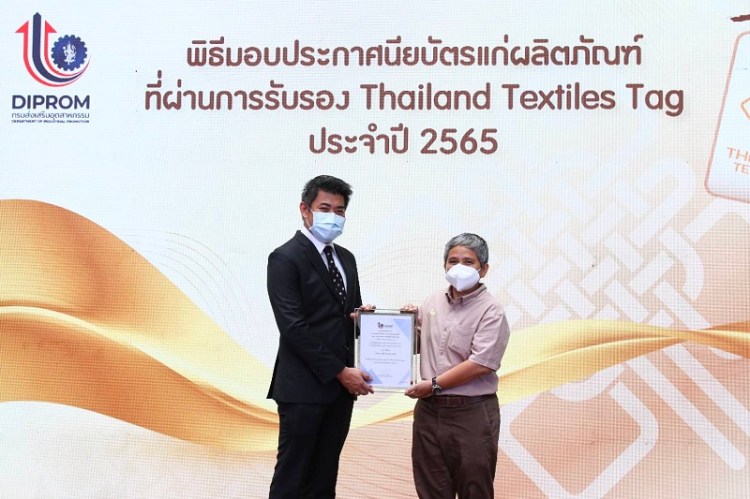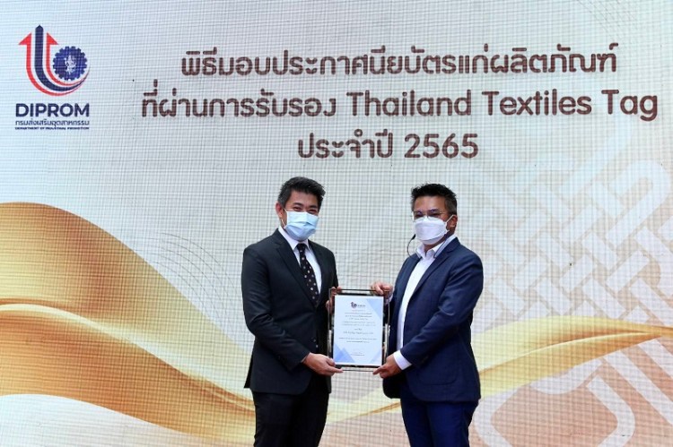 กรมส่งเสริมอุตสาหกรรม หรือ ดีพร้อม (DIPROM) เปิดสถานการณ์ การส่งออกผลิตภัณฑ์สิ่งทอไทยเพิ่มสูงขึ้นในไตรมาสแรกของปี 2565 จากปัจจัยการฟื้นตัวของประเทศคู่ค้าหลักของไทย เตรียมร่งพิจารณารับรองมาตรฐานด้วยฉลากคุณภาพผลิตภัณฑ์สิ่งทอไทย หรือ Thailand Textiles Tag ปี 65 ซึ่งมีผู้ผ่านการรับรอง 26 กิจการ 43 ผลิตภัณฑ์ ตั้งเป้ากระตุ้นมูลค่าทางเศรษฐกิจการค้า ไม่น้อยกว่าร้อยละ 20