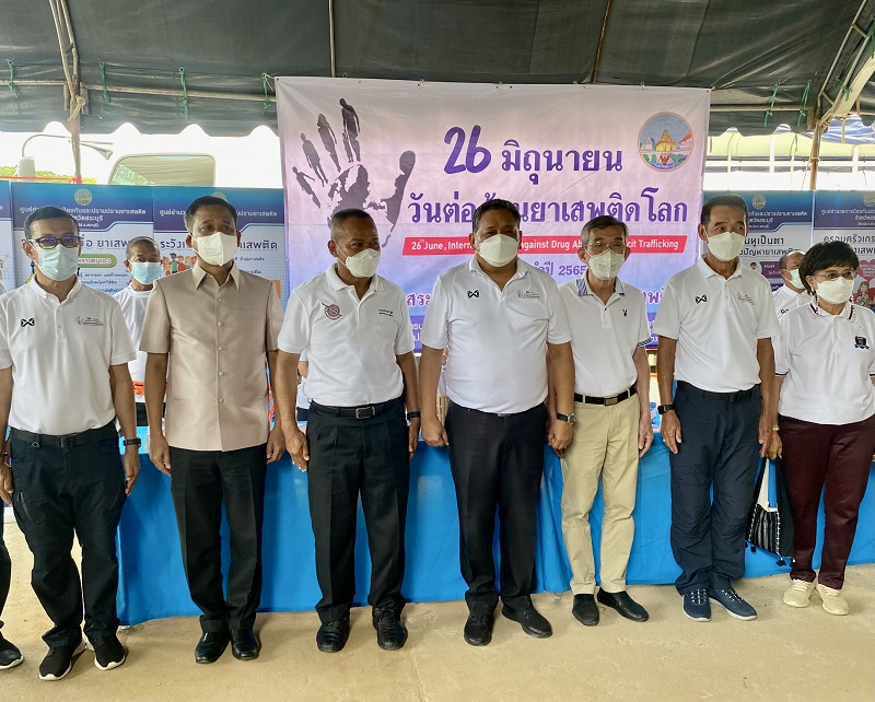 วันที่ 26 มิ.ย.2565 ที่ ภ.จว.สระบุรี ต.ทับกวาง อ.แก่งคอย จว.สระบุรี นายแมนรัตน์ รัตนสุคนธ์ ผู้ว่าราชการจังหวัดสระบุรี เป็นประธานเปิดงาน กิจกรรมวันต่อต้านยาเสพติดโลก โดยมี พลตำรวจตรี พีระพงศ์ วงษ์สมาน รองผู้บัญชาการตำรวจนครบาล ปฏิบัติราชการ ตำรวจภูธรภาค 1, พลตำรวจตรี ชยานนท์ มีสติ ผู้บังคับการตำรวจภูธรจังหวัดสระบุรี , นายธนกฤต อัตถะสัมปุญณะ รองนายกองค์การบริหารส่วนจังหวัดสระบุรี , ดร.มงคล ศิริพัฒนกุล ที่ปรึกษาผู้บัญชาการตำรวจภูธรภาค 1 , นายพลวรรธณ์ เทียนชัยมงคล ปลัดจังหวัดสระบุรี นายดุรงค์ฤทธิ์ ศิริวัฒนพันธ์ นายอำเภอแก่งคอย , นางสาวอังคณา อ้นขวัญเมือง ผู้บัญชาการเรือนจำจังหวัดสระบุรี หน่วยงานภาครัฐ ภาคเอกชน แขกผู้มีเกียรติ ประชาชน นักเรียนนิสิตนักศึกษา เข้าร่วมในพิธีจำนวนมาก