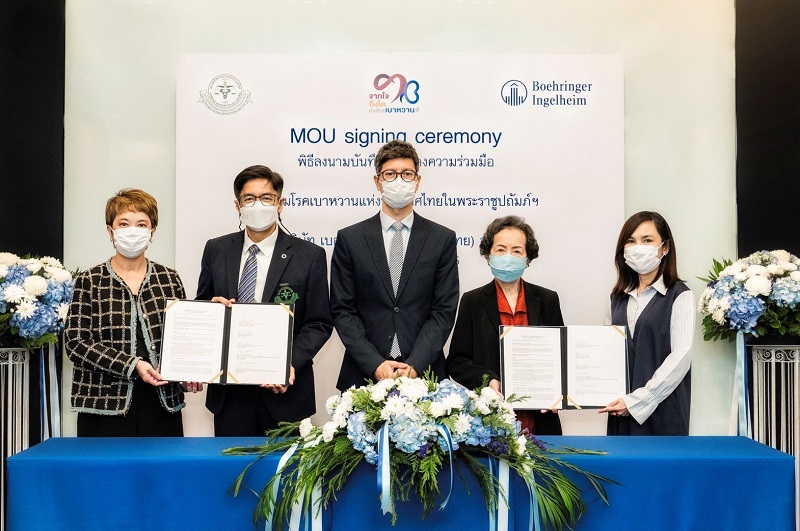 กรุงเทพฯ – บริษัท เบอริงเกอร์ อินเกลไฮม์ (ไทย) จำกัด ลงนามในบันทึกข้อตกลงความร่วมมือกับ สมาคมโรคเบาหวานแห่งประเทศไทย ในพระราชูปถัมภ์สมเด็จพระเทพรัตนราชสุดาฯ สยามบรมราชกุมารี ในโครงการ “จากใจถึงไต ห่างไกลเบาหวาน” โดยมีวัตถุประสงค์เพื่อมุ่งเน้นเผยแพร่และสื่อสารข้อมูลเกี่ยวกับโรคเบาหวานและโรคแทรกซ้อนที่เกิดจากโรคเบาหวาน อาทิ โรคหัวใจล้มเหลว โรคไตวายเรื้อรัง เพื่อให้ประชาชนมีความรู้ความเข้าใจเกี่ยวกับโรค รวมถึงวิธีการดูแลตัวเองและคนรอบข้างผ่านกิจกรรมและการสื่อสารหลากหลายช่องทาง เมื่อเร็ว ๆ นี้