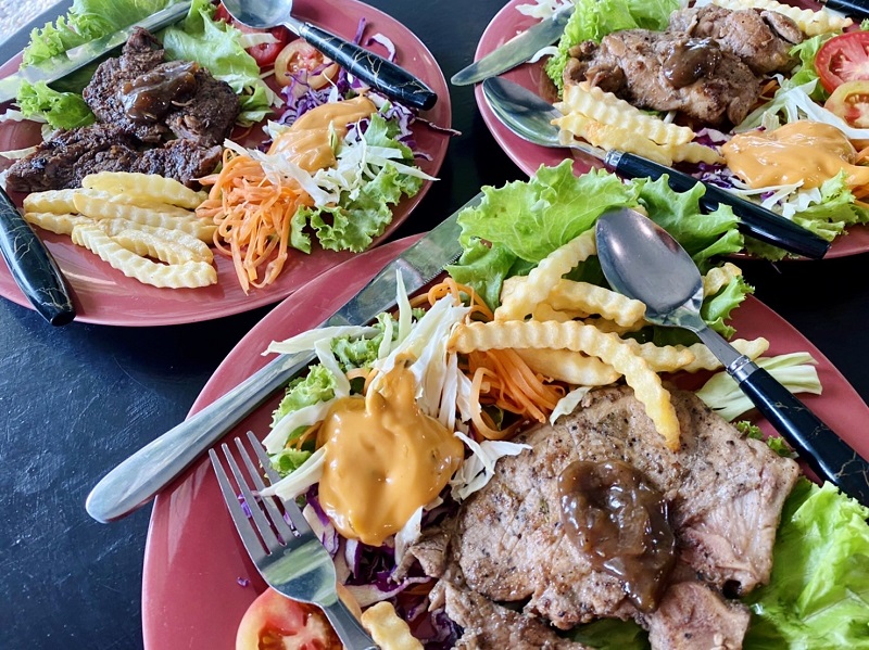 1. สเต็กเนื้อจระเข้ พร้อม จระเข้ปิ้ง-ย่างเสียบไม้