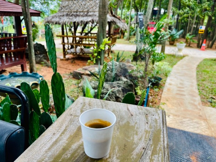 และที่ขาดไม่ได้เลยครับสำหรับผมคือต้องได้กาแฟสดสักแก้วในบรรยากาศแบบนี้ จิบกาแฟพลางชมวิวริมเขื่อนไปด้วยนี่ มันช่างสุขใจยิ่งนัก โชคดีที่ผมได้ร้านกาแฟสดของเรือนจำคลองไผ่ สุดยอดครับ ผมเองสั่งเอสเพรสโซ่ร้อน 1 ชอตเหมือนเคย เข้ม เท่ จริงใจ ครับผม