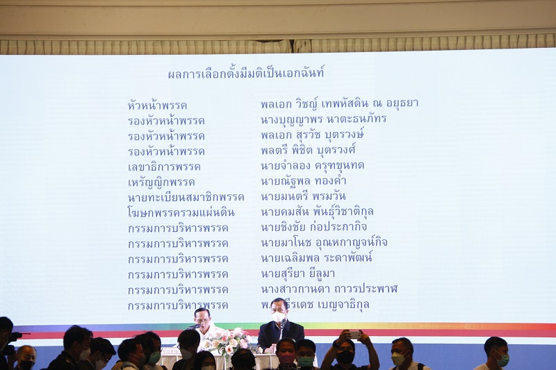 โดยหลังการเสวนาได้มีการนับคะแนนการเลือกคณะกรรมการบริหารพรรคชุดใหม่ทั้งหมด 14 คน ประกอบด้วย พล.อ.วิชญ์ เทพหัสดิน ณ อยุธยา เป็นหัวหน้าพรรค โดยมีรองหัวหน้าพรรค 3 คน ได้แก่ นางบุญญาพร นาตะธนภัทร, พล.อ.สุรวัช บุตรวงษ์ และ พล.ต.พิชิต บุตรวงศ์ ขณะที่ นายจำลอง ครุฑขุนทด เป็นเลขาธิการพรรค, นายณัฐพล ทองคำ เป็นเหรัญญิกพรรค, นายมนตรี พรมวัน เป็นนายทะเบียนสมาชิกพรรค, นายคมสันต์ พันธุ์วิชาติกุล เป็นโฆษกพรรค, นายชิงชัย ก่อประภากิจ, นายมาโนช อุณหกาญจน์กิจ, นายเฉลิมพล ระดาพัฒน์, นายสุริยา ยีลูมา, น.ส.กานดา ถาวรประพาฬ และพันเอก ธีรเดช เบญจาธิกุล เป็นกรรมการบริหารพรรค