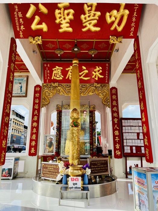 สำหรับอาคารศาลหลักเมือง สร้างขึ้นในปี พ.ศ. 2504 ชาวจีนที่ประกอบกิจการธุรกิจในตัวเมืองนครราชสีมาได้ร่วมกันจัดสร้างตัวศาลหลักเมืองขึ้นมาใหม่เป็นแบบเก๋งจีนแล้วอัญเชิญองค์เทพเจ้าอากงประดิษฐานเพื่อปกป้องดูแลเสาหลักเมืองตามความเชื่อของชาวจีนหรือจะทำให้กิจการเจริญรุ่งเรือง ทุกวันนี้เรียก “ศาลเจ้าหลักเมือง” ขอพรได้ทุกเรื่อง เช่น การประกอบอาชีพการค้า การลงทุน ให้กิจการเจริญรุ่งเรือง เสริมดวงชะตาให้พบเจอเรื่องดี ๆ เป็นมงคลชีวิตและมีจิตใจเข้มแข็งมั่นคงในความดี ซึ่งผมเองก็มีโอกาสปิดทองและกราบขอพรด้วยเช่นกัน รู้สึกได้ถึงความศักดิ์สิทธิ์และน่าเลื่อมใสศรัทธา เสาหลักเมืองดูเก่าแก่มากครับไปกราบขอพรกันได้