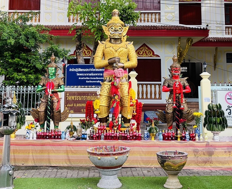 จุดที่ 3 เมื่อมาถึงวัดพระนารายณ์ ต้องไม่พลาดเดินไปกราบขอพร ณ ศาลพระนารายณ์สถานที่ศักดิ์สิทธิ์ของชาวเมืองโคราชสันนิษฐานกันเองว่าน่าจะมีมาตั้งแต่ครั้งเมืองโคราชภายในประดิษฐาน องค์พระนารายณ์สี่กร องค์พระพิฆเนศ องค์ท้าวมหาพรหมหรือพระพรหมสี่หน้า เทพเจ้าในศาสนาพรามณ์-ฮินดู ซึ่งชาวพุทธก็เชื่อถึงความศักดิ์สิทธิ์คู่บ้านคู่เมืองมาตั้งแต่อาณาจักรทวารวดีหรือขอมเรืองอำนาจจนกระทั่งถึงทุกวันนี้ โดยส่วนตัวผมเองก็ให้ความเคารพนับถือด้วยเช่นกันก็ไม่พลาดในการกราบขอพรสิ่งศักดิ์สิทธิ์ที่ประดิษฐานอยู่ในบริเวณศาลพระนารายณ์แห่งนี้ครับ