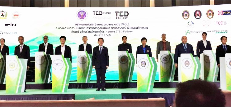 ทาง กองทุนพัฒนาผู้ประกอบการเทคโนโลยีและนวัตกรรม (TED Fund เทดฟัน) กระทรวงการอุดมศึกษา วิทยาศาสตร์ วิจัยและนวัตกรรม (อว.) จัดพิธีลงนามบันทึกข้อตกลงความร่วมมือ (MOU) ระหว่างสำนักงานปลัดกระทรวงการอุดมศึกษา วิทยาศาสตร์ วิจัยและนวัตกรรม กับเครือข่ายร่วมพัฒนาผู้ประกอบการ (TED Fellow) “เทดฟอลโลว์” จำนวน 18 หน่วยงานทั่วประเทศ เพื่อหวังบ่มเพาะ พร้อมให้คำปรึกษาแก่ผู้ประกอบการที่ต้องการเงินทุนวิจัย และพัฒนาต่อยอดสู่เชิงพาณิชย์
