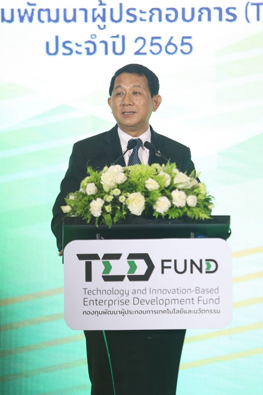 ศ.ดร.นพ.สิริฤกษ์ ทรงศิวิไล ปลัดกระทรวงการอุดมศึกษา วิทยาศาสตร์ วิจัยและนวัตกรรม กล่าวว่า กองทุนพัฒนาผู้ประกอบการเทคโนโลยีและนวัตกรรม (TED Fund) มีภารกิจในการสนับสนุนทุนด้านการดำเนินธุรกิจ การพัฒนาศักยภาพผู้ประกอบการด้านเทคโนโลยีและนวัตกรรม เพื่อส่งเสริมและสนับสนุนการเพิ่มขีดความสามารถทางการแข่งขัน พร้อมทั้งสร้างเครือข่ายผู้สนับสนุนการร่วมลงทุนและสนับสนุนเครือข่ายบ่มเพาะผู้ประกอบการเทคโนโลยีและนวัตกรรมให้ประสบความสำเร็จเชิงธุรกิจอย่างยั่งยืน สามารถนำผลงานวิจัยและนวัตกรรมไปต่อยอดใช้ประโยชน์ในเชิงพาณิชย์ และร่วมผลักดันประเทศไทยไปสู่เศรษฐกิจที่ขับเคลื่อนด้วยนวัตกรรม