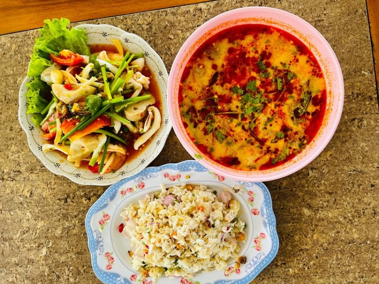 นอกจากนี้ทางร้านยังมีอีกหลายหลายเมนูครับโดยเฉพาะอาหารทะเลสดๆ ทั้งกุ้ง หอย ปู ปลา เรียกว่ามาครบยกทะเลกันเลยครับ เช่น “ต้มยำกุ้งน้ำข้น” ของโปรดของผมเช่นกัน รสชาติจัดจ้านมีเผ็ด มีเปรี้ยวน้ำมะนาวสด ซดคล่องคอซี๊ดซ๊าดถึงใจ อีกเมนูก็แซ่บไม่แพ้กันเลยคือ “ยำทะเล” เมนูนี้มาครบทั้งกุ้ง หอย ปลาหมึก แซ่บแท้อีกเมนูครับ