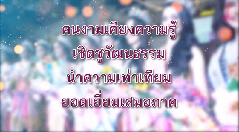 “คนงามเคียงความรู้ เชิดชูวัฒนธรรม นำความเท่าเทียม ยอดเยี่ยมเสมอภาค”